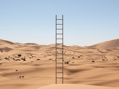 Immersive, l’exposition invite le spectateur à ralentir. l’Échelle précédemment ancrée en Méditerranée, est ici installée dans le désert du Sahara.